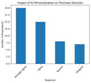 70% of respondents agree that AI-based personalization influences their purchasing decisions. This strongly supports the hypothesis that AI-driven recommendations and targeted ads increase conversion rates and sales effectiveness.